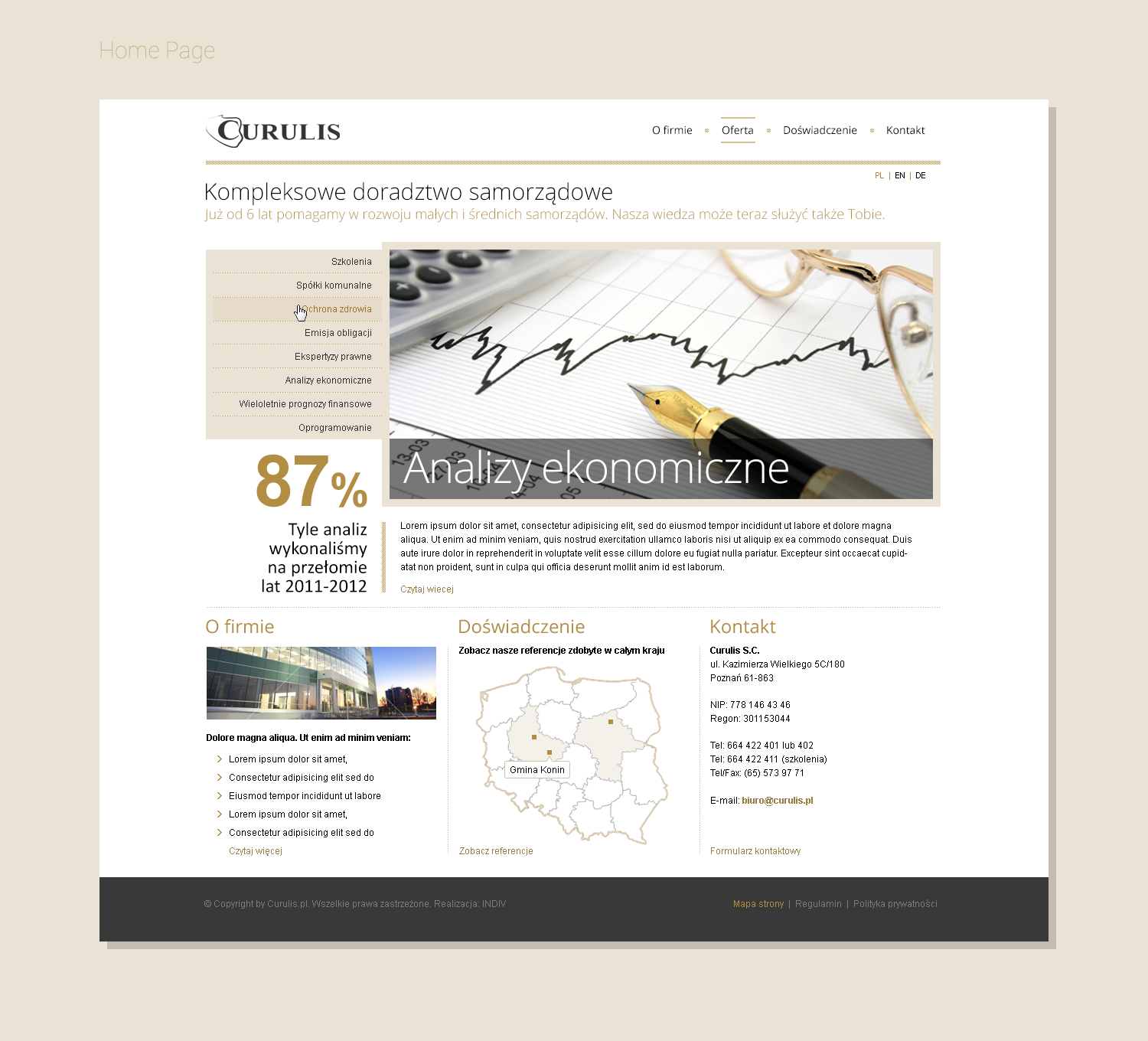 Dla firmy Curulis stworzyliśmy firmową stronę internetową (projekt + wdrożenie). Firma Curulis świadczy usługi doradcze skierowane dla jednostek samorządu terytorialnego i ich jednostek organizacyjnych.