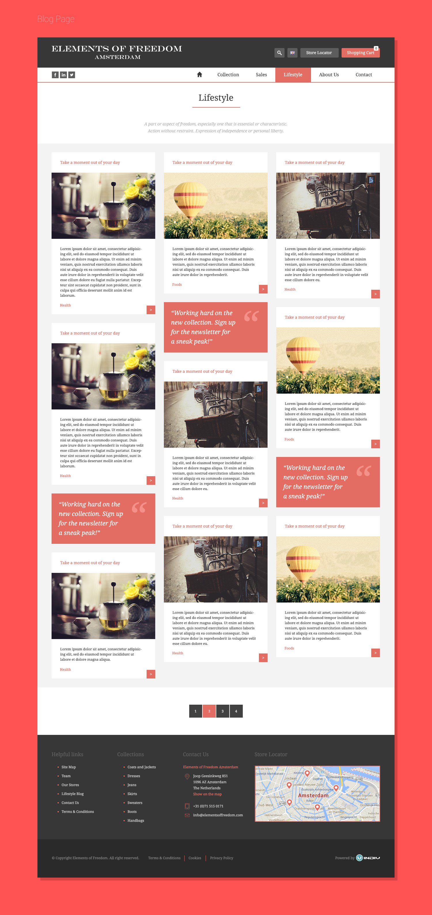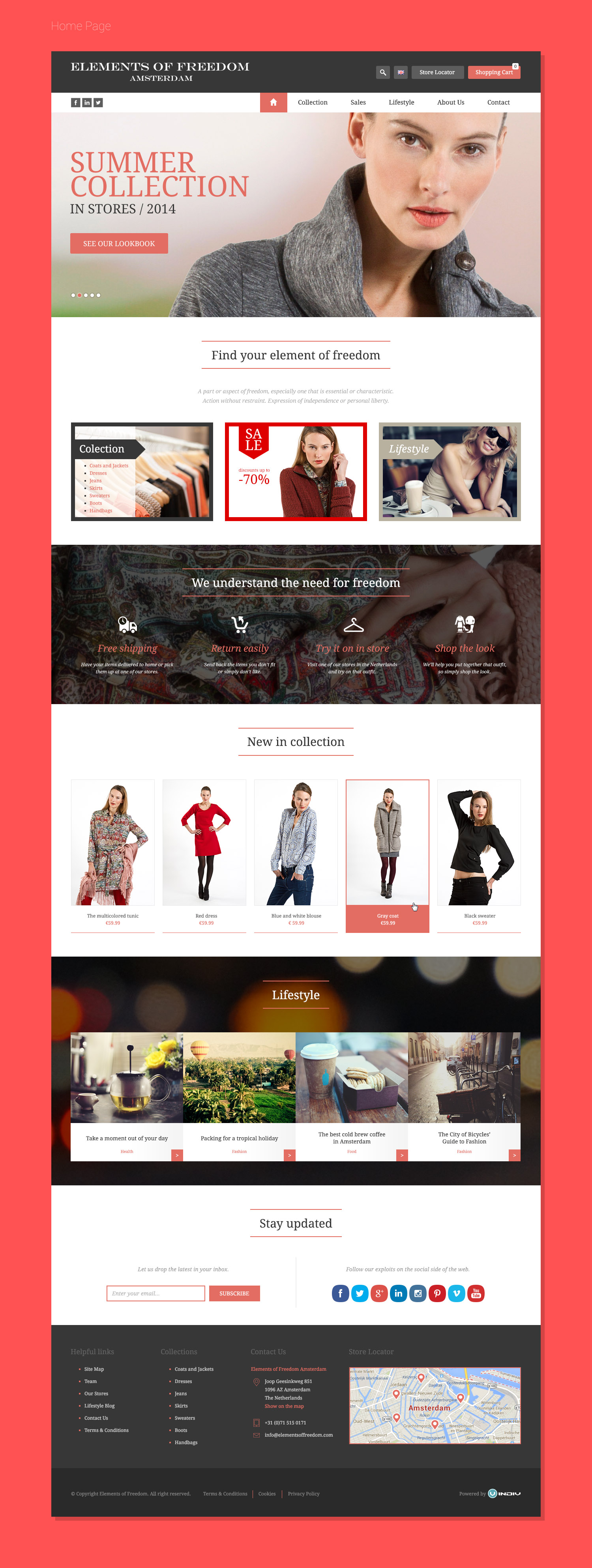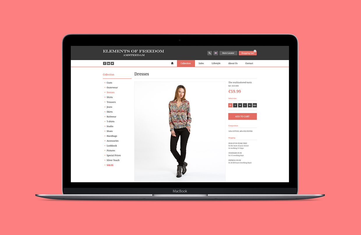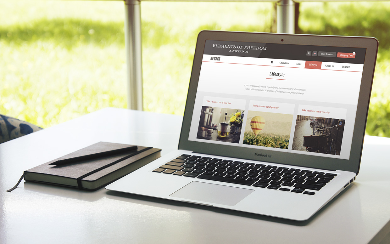 Dla marki odzieżowej z Holandii – Elements of Freedom Amsterdam – stworzyliśmy projekt graficzny sklepu internetowego i zajęliśmy się jego wdrożeniem. Sklep pełni także rolę miejsca prezentacji najnowszych trendów i stylizacji, które klientki sklepu mogą stworzyć z ubrań, oferowanych przez EofF Amsterdam.