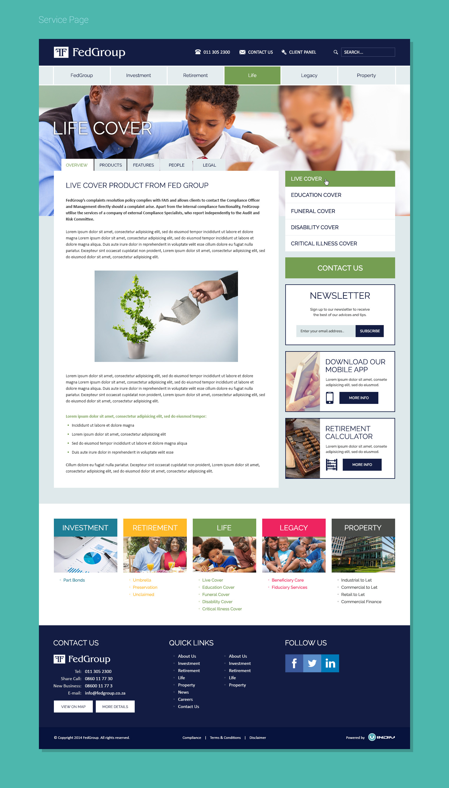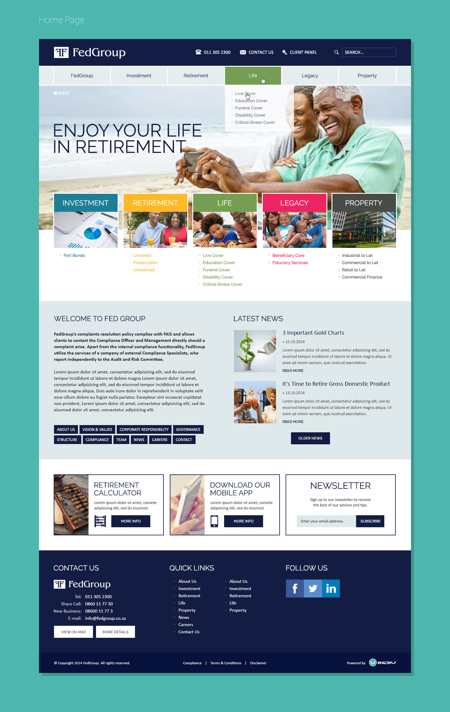 Opracowaliśmy i wdrożyliśmy projekt strony internetowej dla FED Group – instytucji finansowej z siedzibą w Sandton (RPA). Strona prezentuje wszystkie produkty finansowe firmy oraz zawiera narzędzia, które mogą pomóc klientom.