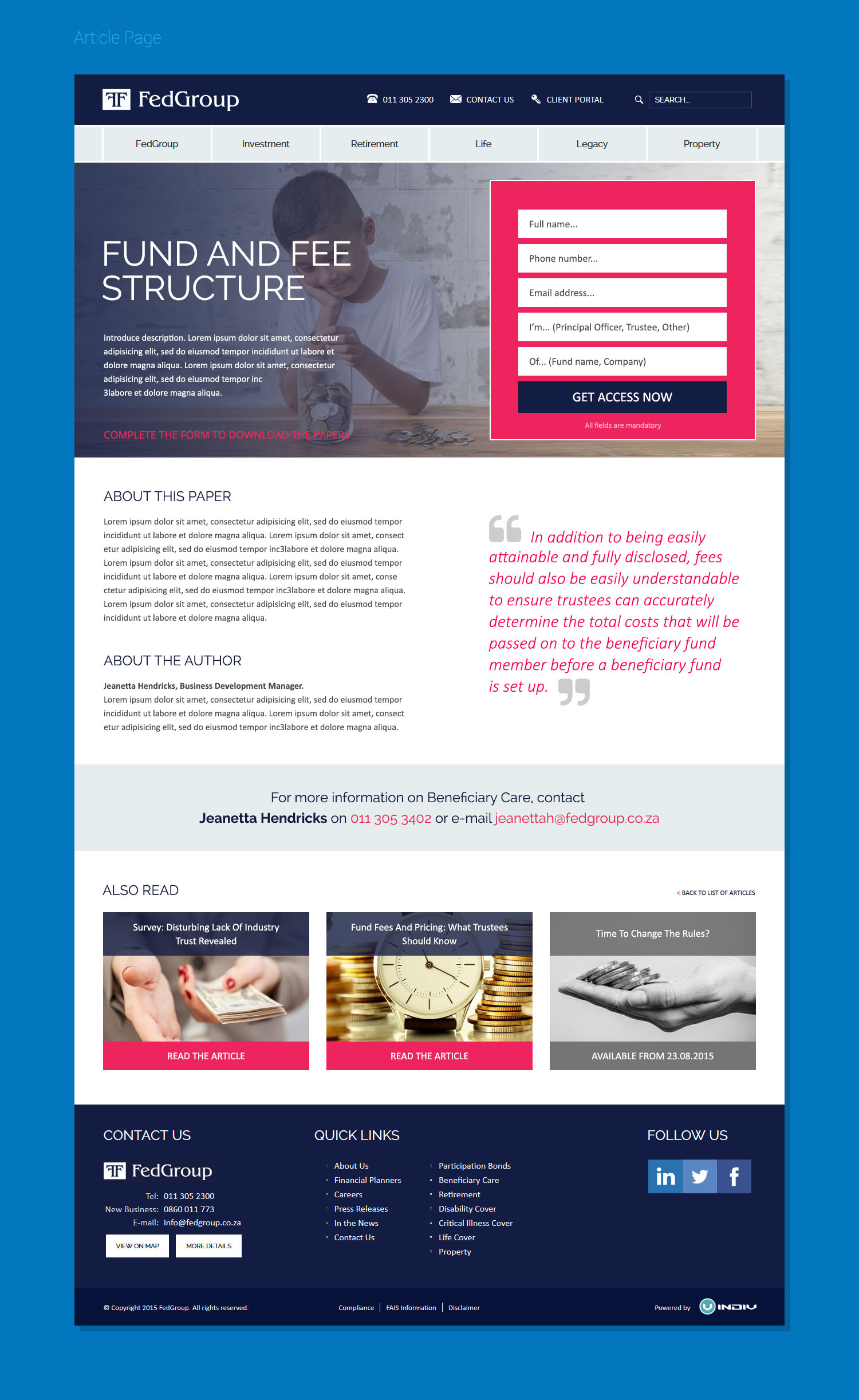Dla firmy FED przygotowaliśmy dedykowaną stronę dla projektu “Paper” czyli cyklu artykułów skierowanych do klientów FED Group. Moduł pozwala na pobranie artykułu w formacie PDF, po dokonaniu szybkiej rejestracji za pomocą formularza.