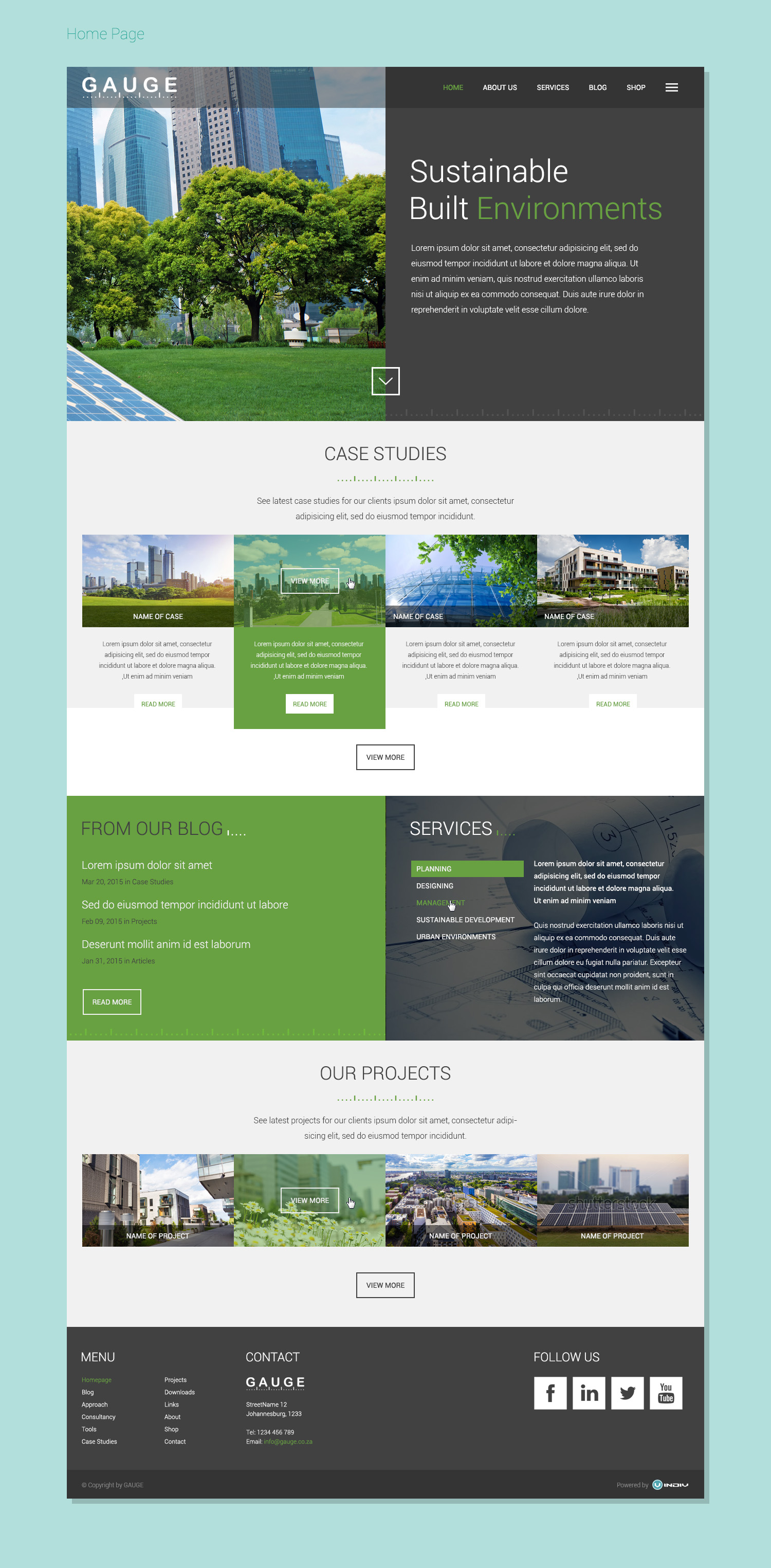 Na zlecenie firmy GAUGE stworzyliśmy projekt graficzny strony internetowej. Firma zajmuje się projektowaniem i realizacją przestrzeni w zgodzie ze środowiskiem naturalnym.