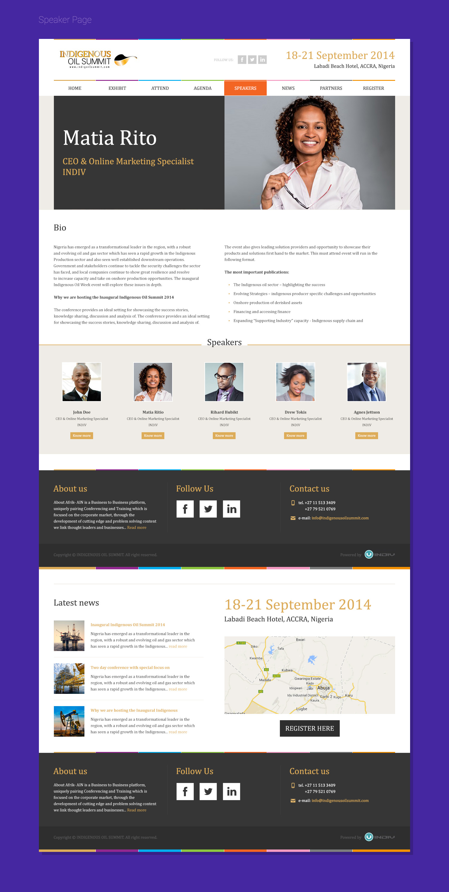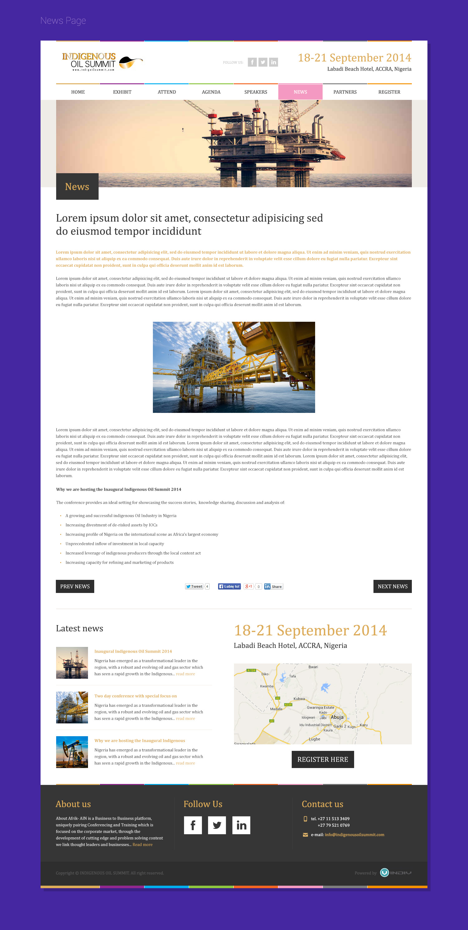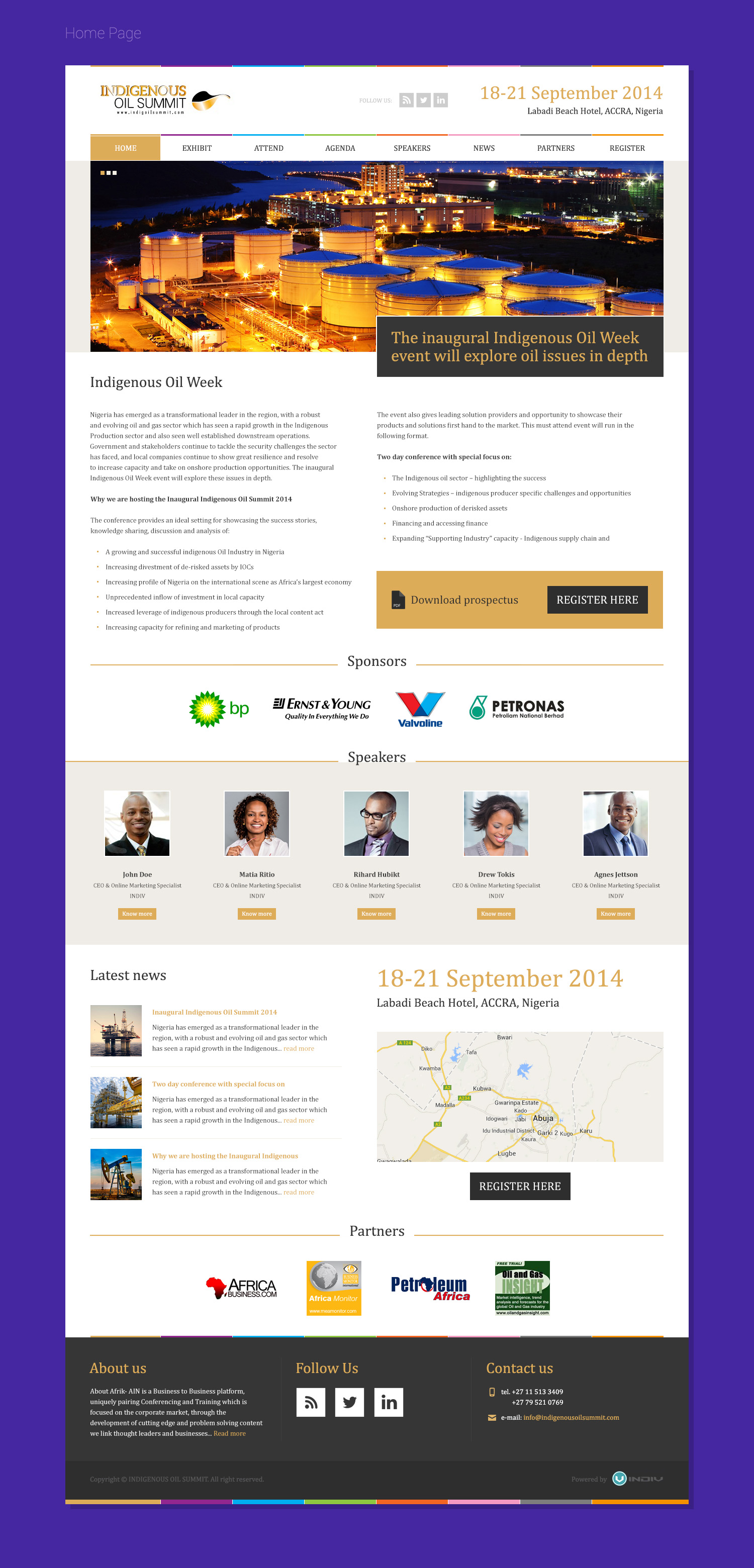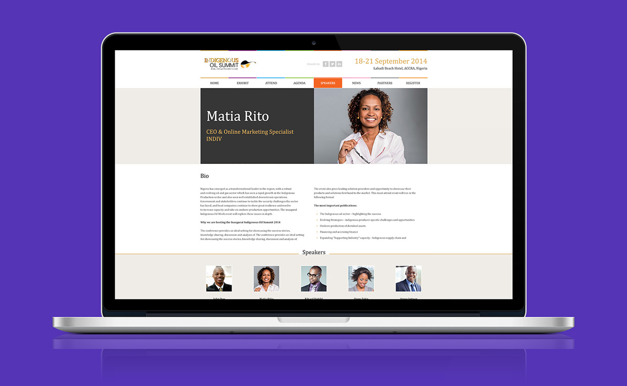 Przygotowaliśmy stronę internetową dla wydarzenia Indigenous Oil Summit, organizowanego w Nigerii. Strona, oprócz roli informacyjnej, pozwala także na zakup biletów potrzebnych do udziału w konferencji.