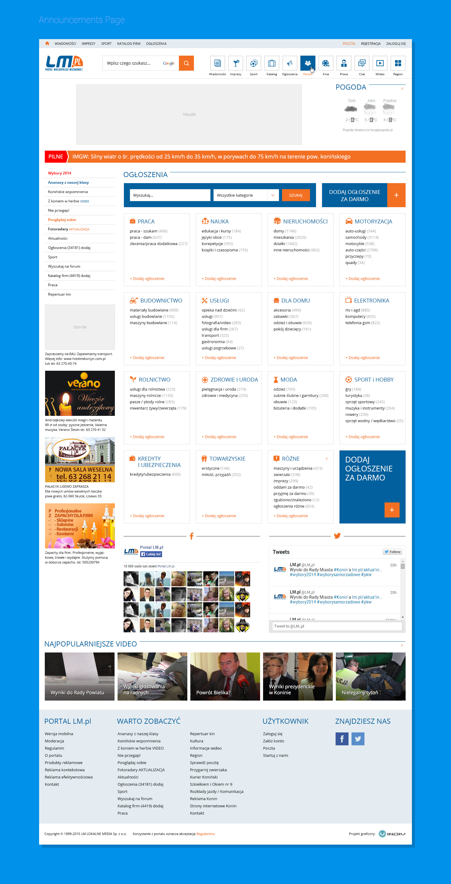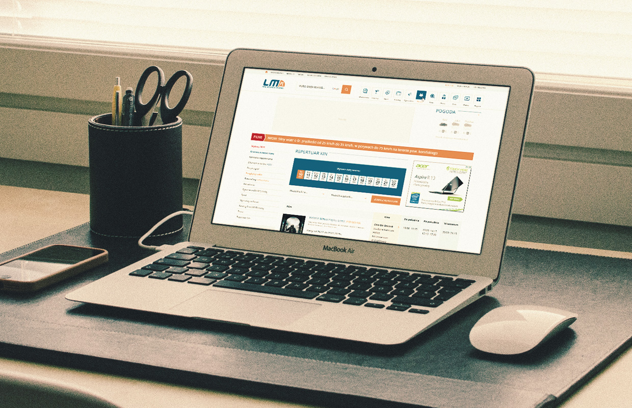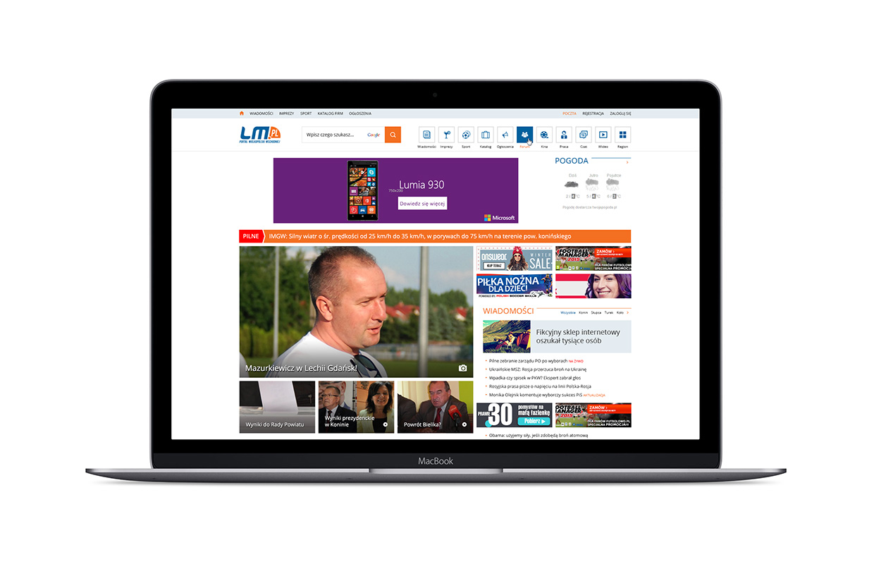 Projekt graficzny portalu wykonany na zlecenie LM internet. Portal LM.pl założony został w 1999 roku i jest pierwszym, najstarszym i największym internetowym serwisem informacyjnym we Wschodniej Wielkopolsce czyli na terenie byłego województwa konińskiego.