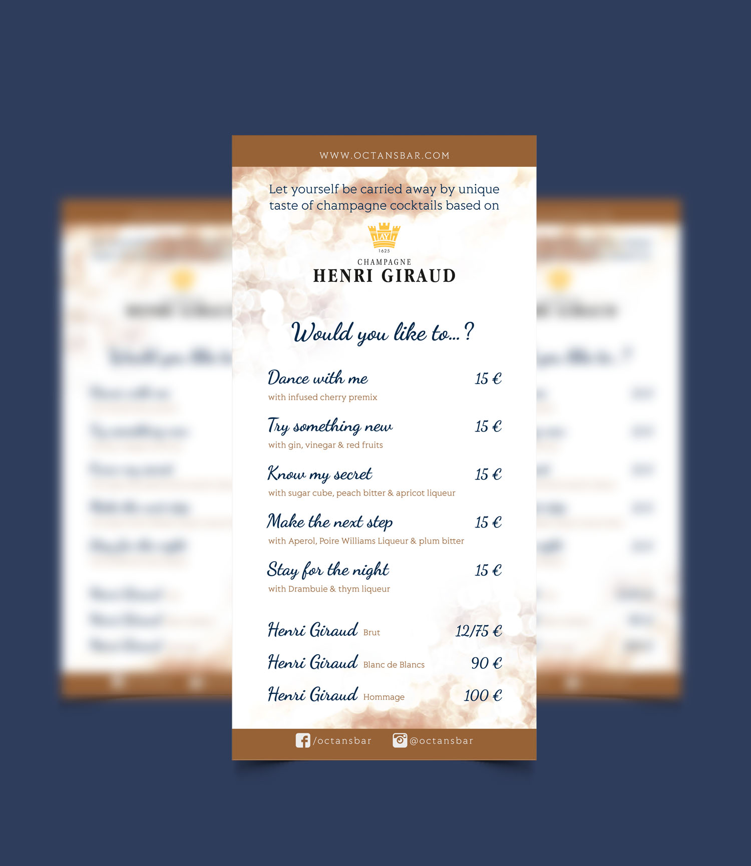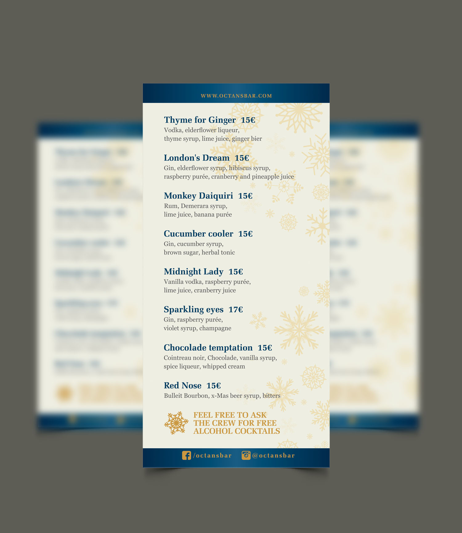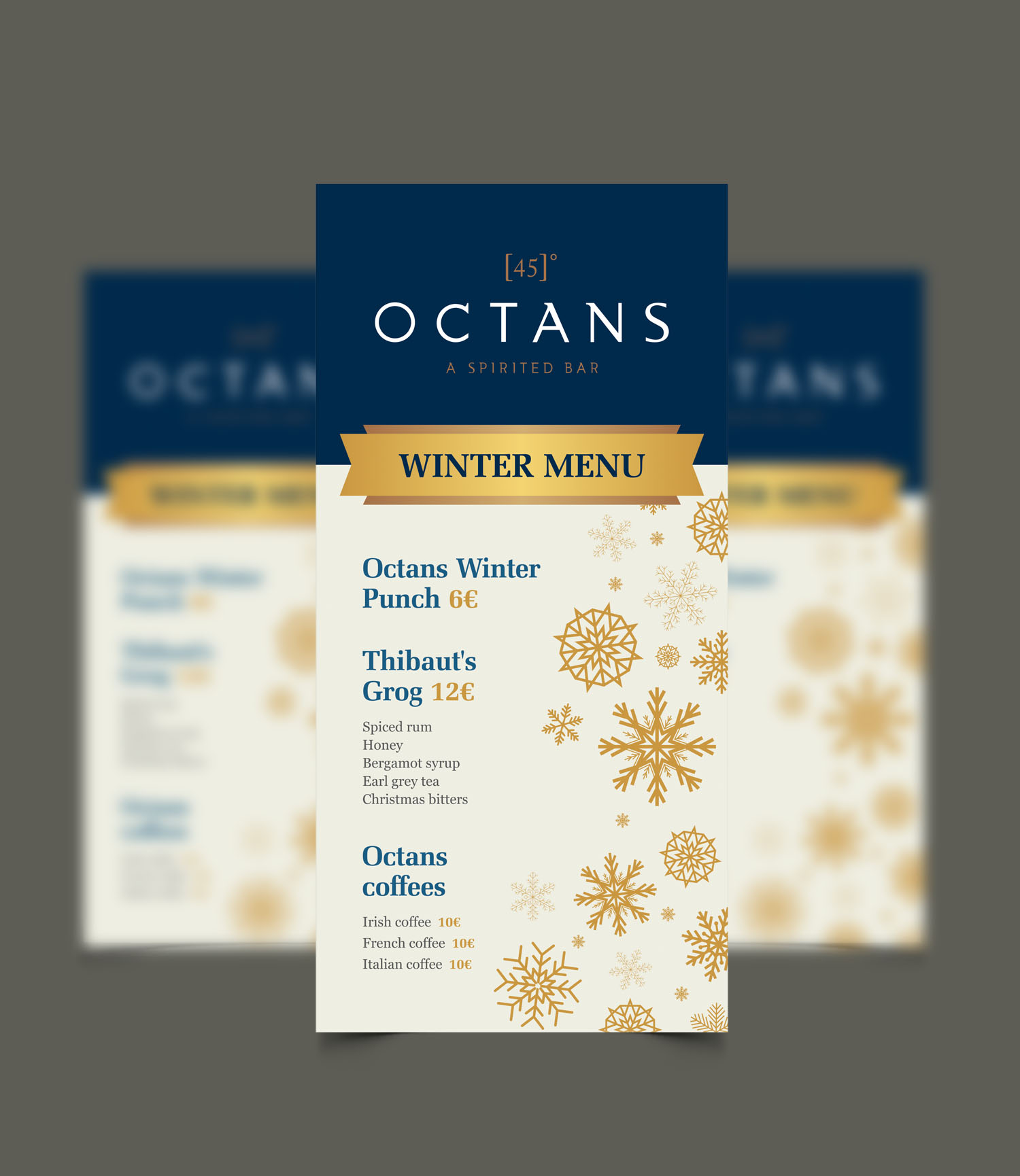 Dla klubu Octans w Luxemburgu przygotowaliśmy projekty graficzne menu z okazji kilku imprez tematycznych.