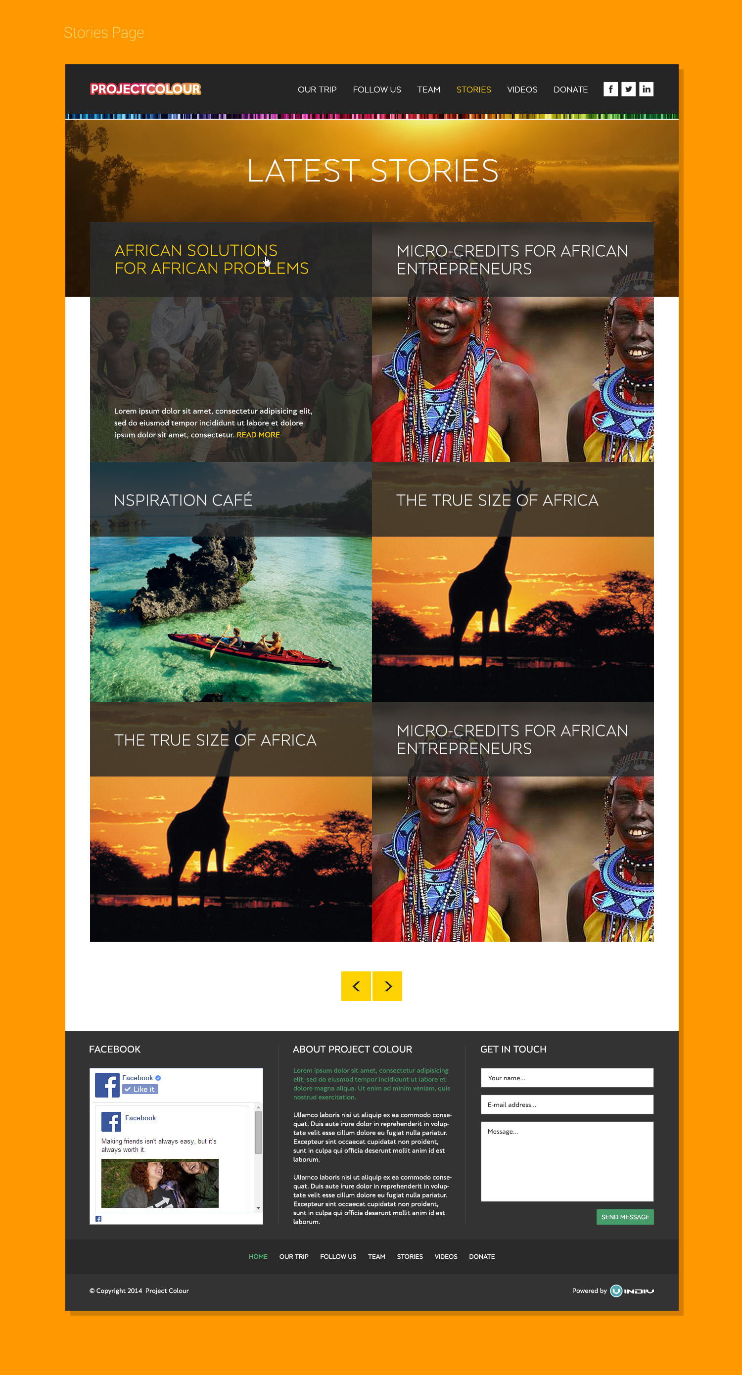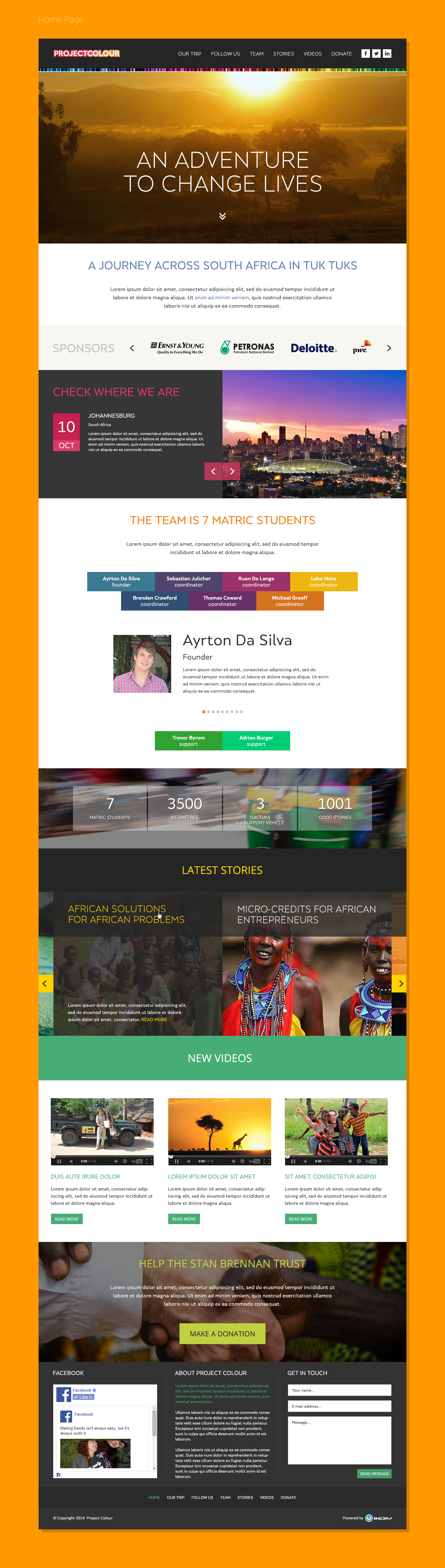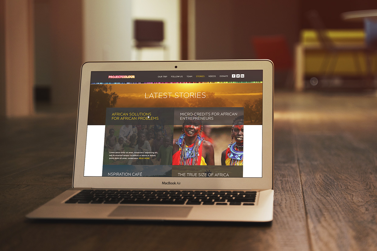 Projekt graficzny strony www oraz wdrożenie go na platformie WordPress. Stronę stworzyliśmy na zlecenie osób zaangażowanych w projekt PROJECTCOLOURS, które podróżowały wokół Afryki i zbierały pieniądze na szczytny cel.